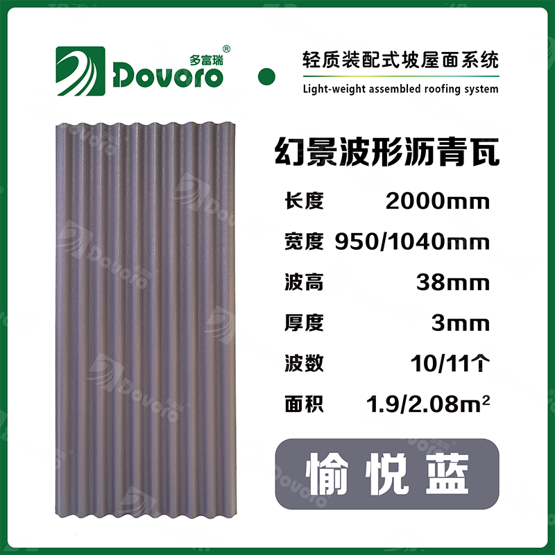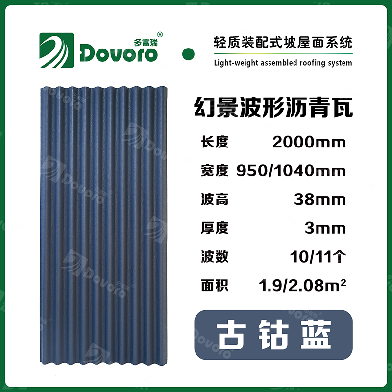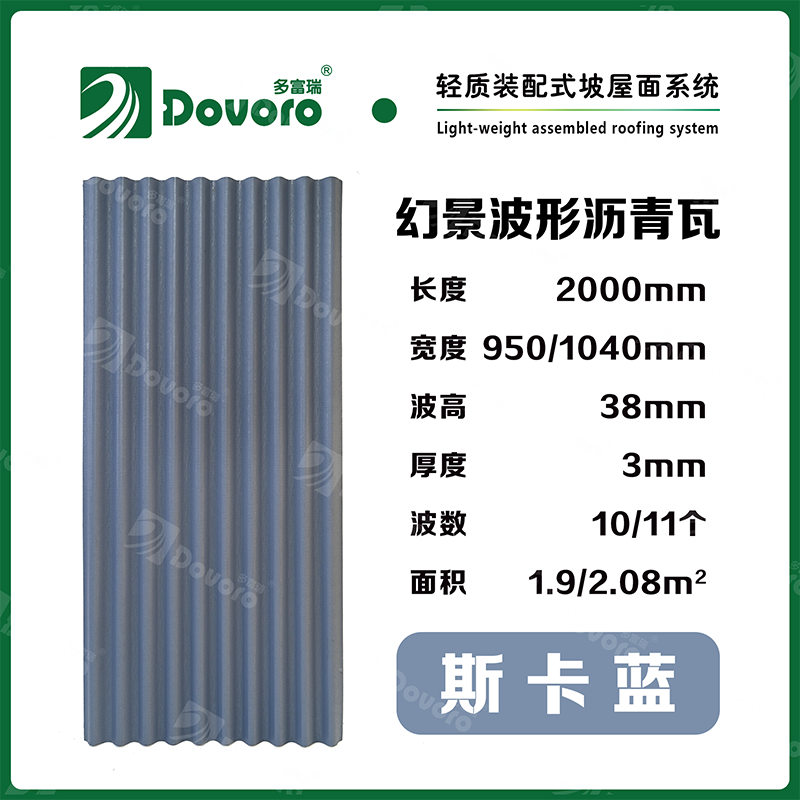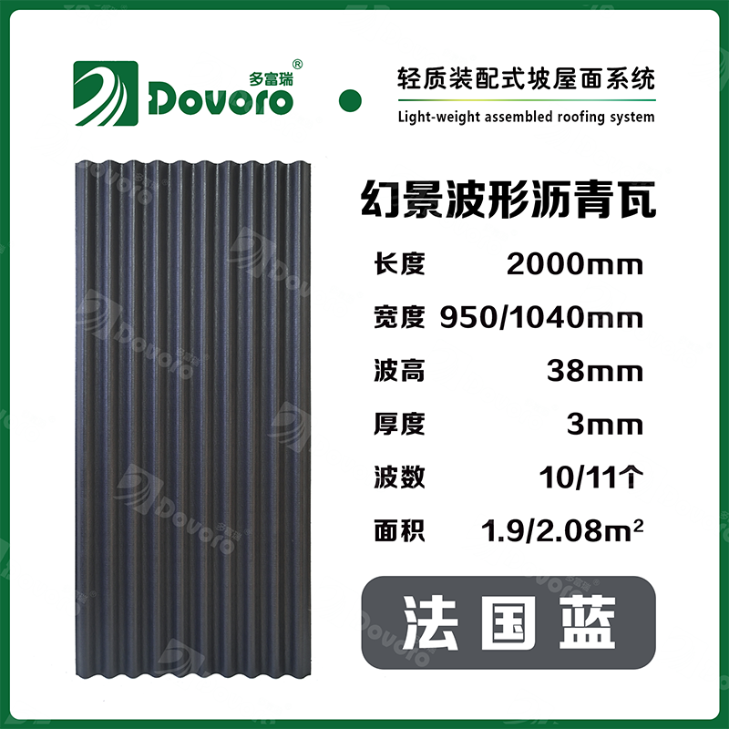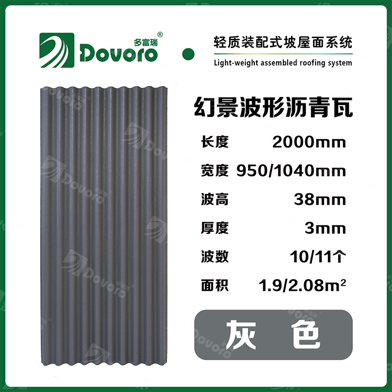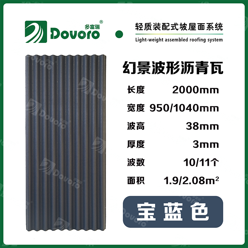 1、多富瑞幻景波形瀝青瓦由礦植物纖維在高溫高壓下浸潤瀝青而成,瓦材整體更加牢固且具有很強的韌性,熱固性樹脂為材料保持強度;
