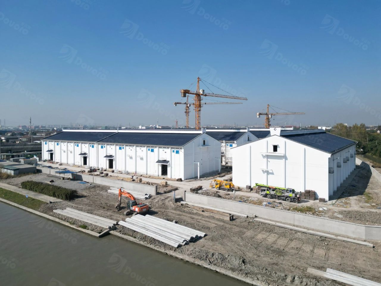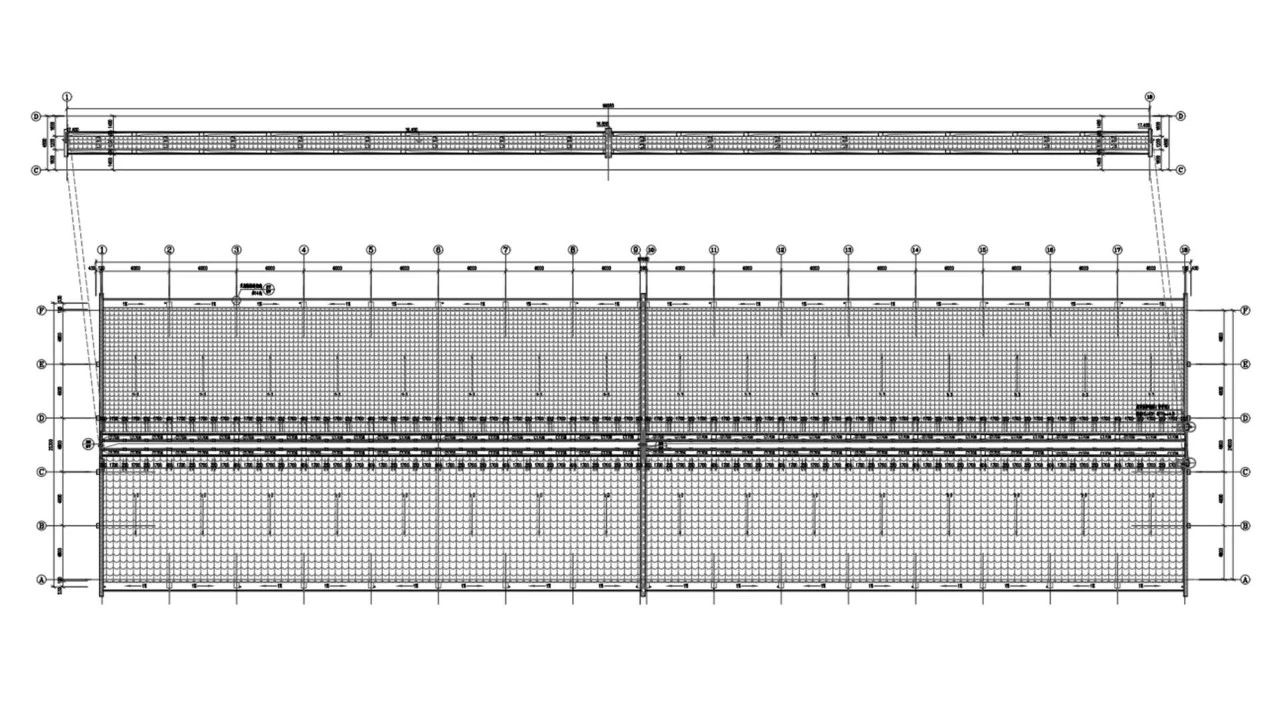 糧庫單體建筑俯視圖,采用多富瑞波形瀝青瓦施工