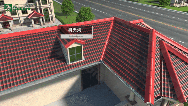 多富瑞精心設(shè)計(jì)了不同位置的節(jié)點(diǎn)處理方式,如屋脊、天溝、煙囪等位置,使用防水卷材或通風(fēng)卷材輔助防水。無需像傳統(tǒng)坡屋面需要大量使用防水卷材,僅在部分位置加強(qiáng)防水性,使不同角度瓦材之間也可以嚴(yán)絲合縫。