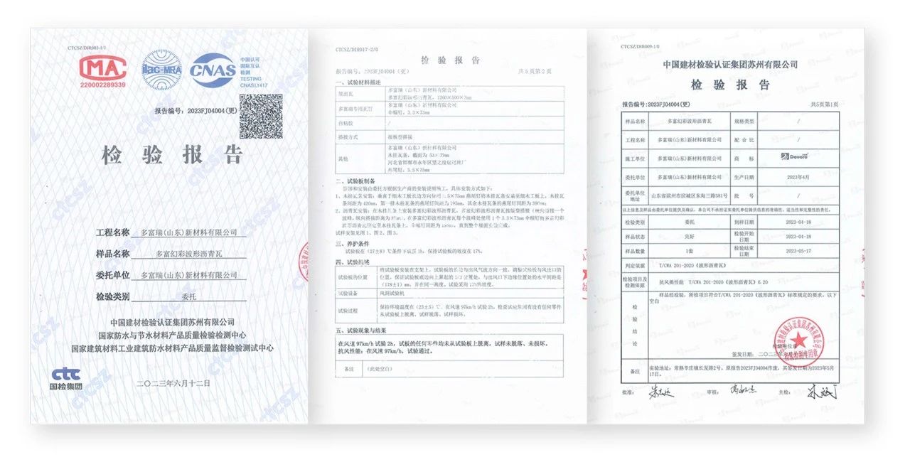 波形瀝青瓦使用礦植物纖維和瀝青作為主要的原材料,瀝青通過高溫浸漬后填滿礦植物纖維中的孔隙,與礦植物纖維融為一體。瀝青是優(yōu)秀的防水材料,多富瑞瓦材的瀝青含量≥40%,吸水率≤10%,這使得瓦材擁有了優(yōu)異的防水性能。加上其他原材料的配比添加,瀝青可以穩(wěn)固地發(fā)揮其防水效果,不會因風(fēng)吹日曬或切割安裝導(dǎo)致瀝青脫落。