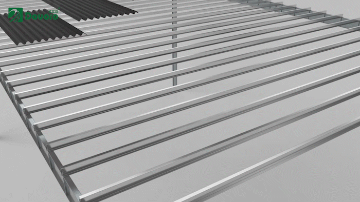 幻景瓦是多富瑞產(chǎn)品線中尺寸最大的一款瓦材,可以橫跨檁條,使用鋼結(jié)構(gòu)瓦釘將幻景固定至檁條上,施工極為方便。