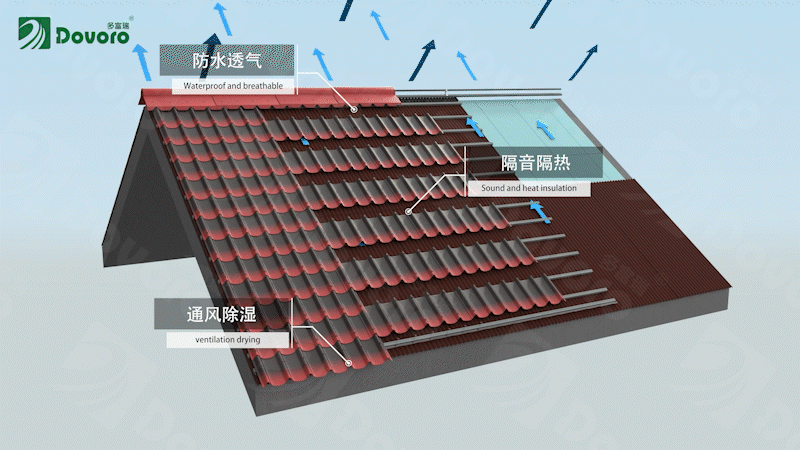 “幻彩”波形瀝青瓦與波形瀝青防水板組成輕質(zhì)坡屋面系統(tǒng),集輕質(zhì)、防水、透氣、隔熱、靜音、施工便捷等優(yōu)點為一身。
