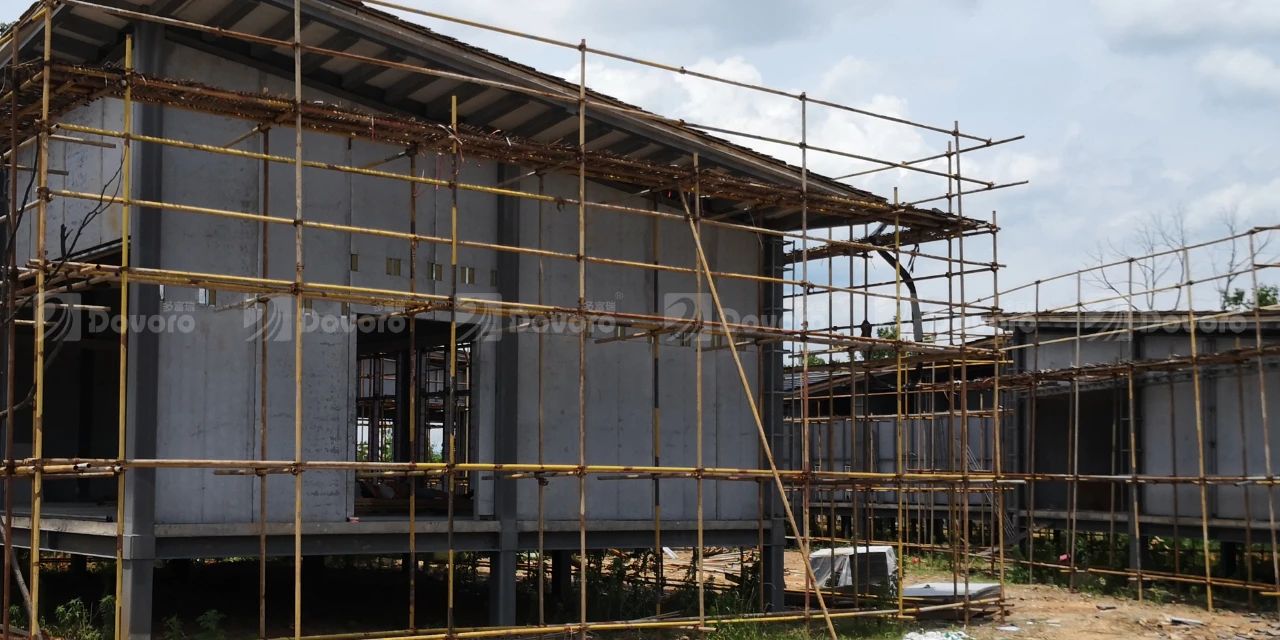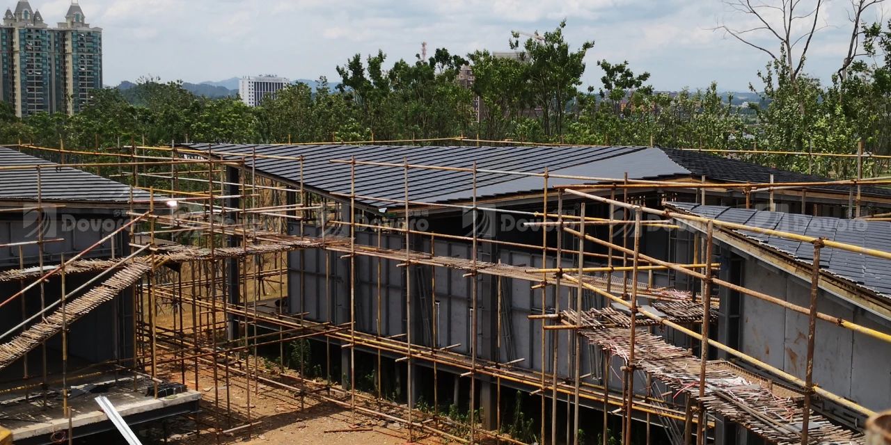 本項目中建筑采用鋼結(jié)構(gòu)裝配式設(shè)計,波形瀝青防水板可以在各類屋面基層上快速安裝。