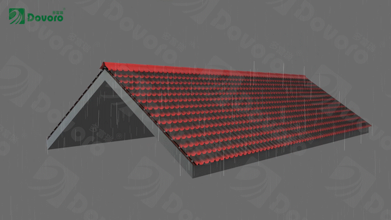 同時(shí)波形瀝青瓦的吸水率僅為6%左右,本身材料不容易吸水,再加上整個(gè)系統(tǒng)防排結(jié)合的設(shè)計(jì),雨水可以快速地排出屋面??梢蚤L(zhǎng)期保持屋面系統(tǒng)內(nèi)部的干燥。