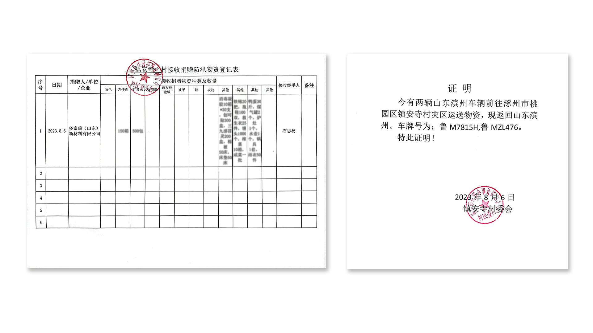 企業(yè)之興,源于社會之力。我們深知企業(yè)的發(fā)展與社會息息相關(guān),承擔(dān)著創(chuàng)造社會價(jià)值的重要責(zé)任。在嚴(yán)峻的挑戰(zhàn)面前,多富瑞秉承“誠篤至信,臻于至善”的企業(yè)文化,將企業(yè)社會責(zé)任轉(zhuǎn)化為實(shí)際行動,以綿薄之力支持涿州搶險(xiǎn)救災(zāi)工作。